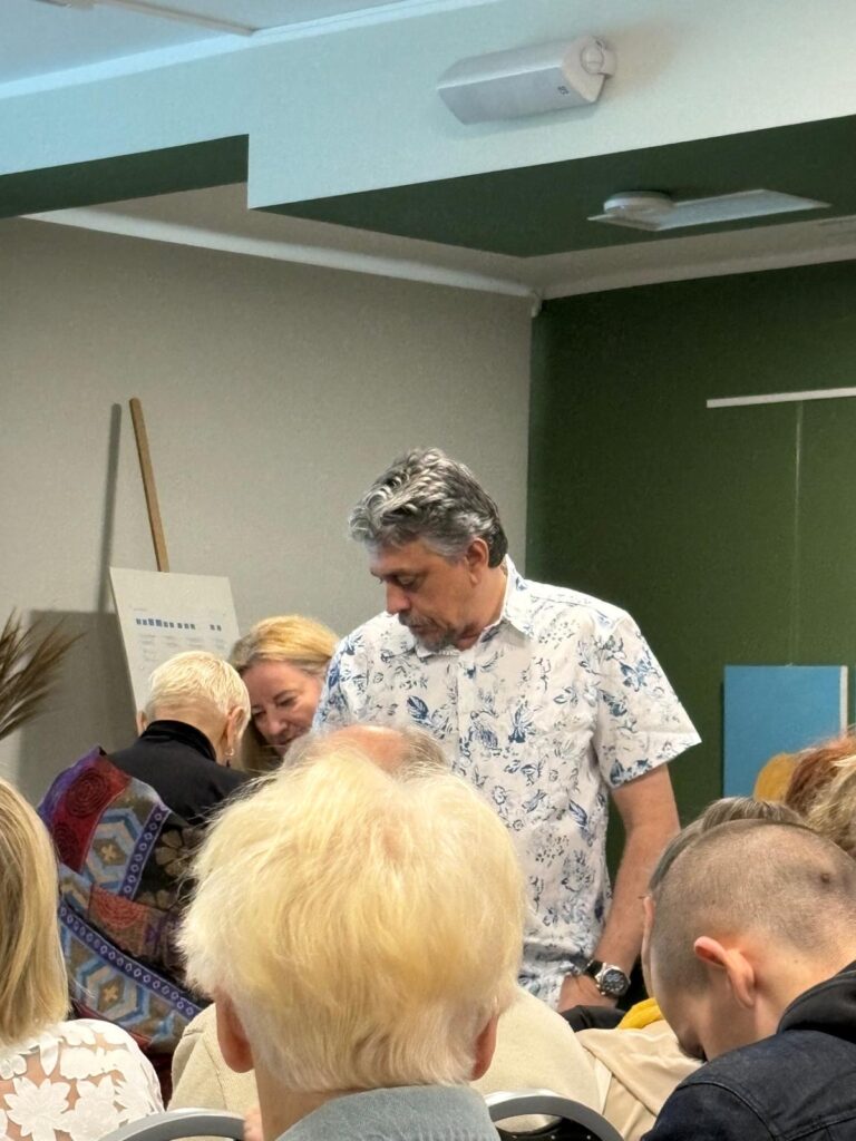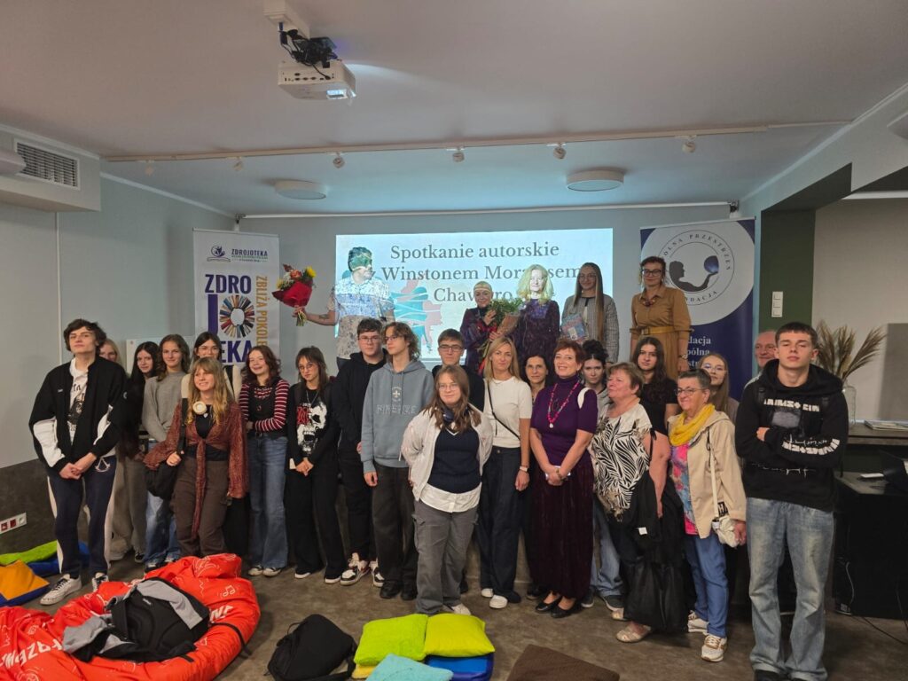 Dnia 22 września z Profesorkami Kingą Rejman i Małgorzatą Iwanek uczestniczyliśmy ( klasy 2 a, bc, bl i przeDP) w niezwykłym spotkaniu z kolumbijskim poetą, Winstonem Moralesem Chavarrro i tłumaczką jego dzieł, Barbarą Stawicką- Pirecką, hispanistką i romanistką. Spotkanie odbyło się w Miejskiej Bibliotece Publicznej w Szczawnie Zdroju. Mieliśmy wyjątkową okazję posłuchać kolumbijskiej poezji, zrozumieliśmy jak za oceanem postrzega się świat i jak różni się koncepcja czasu, od tej znanej nam w Europie oraz jaką ważną rolę w poezji pełni oniryzm. Cieszymy się, że możemy eksplorować tak niezwykle przestrzenie literatury i doświadczać na co dzień tak odległych nam światopoglądów.